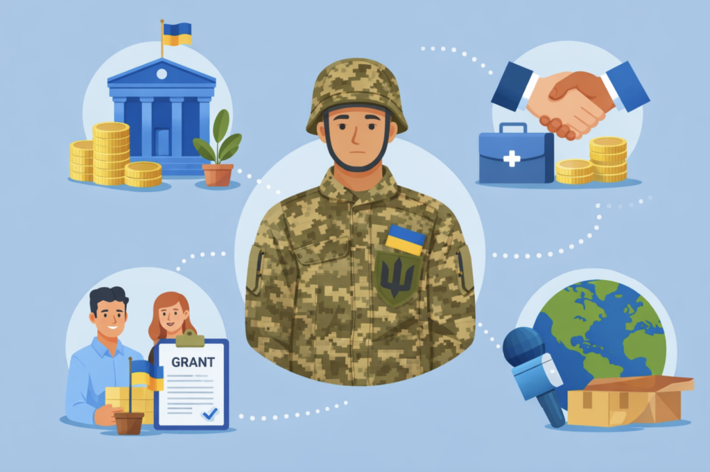 Міжнародні організації, фонди та партнери України також підтримують ветеранів через грантові програми. Такі конкурси нерідко поєднують фінансову підтримку з навчанням або менторством. Зазвичай донорські програми більш гнучкі щодо умов, однак можуть мати чіткий фокус на пріоритетах: інновації, соціальний вплив, економічна стійкість, реінтеграція тощо.