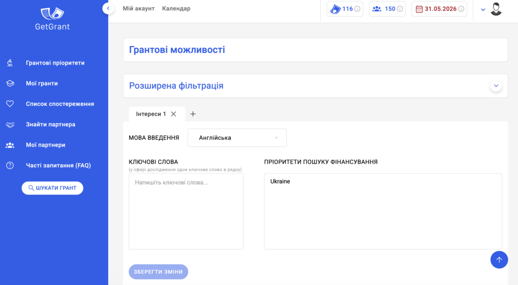 – GetGrant: ви готові використовувати фільтри й сучасний пошук грантів, щоб не пропустити нові можливості. Реєструйтеся вже зараз!